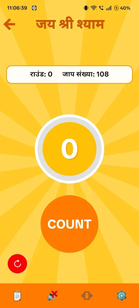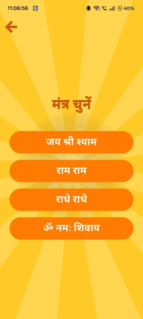 Select a mantra to begin your japa practice. Tap anywhere on the counter page to count your repetitions.
